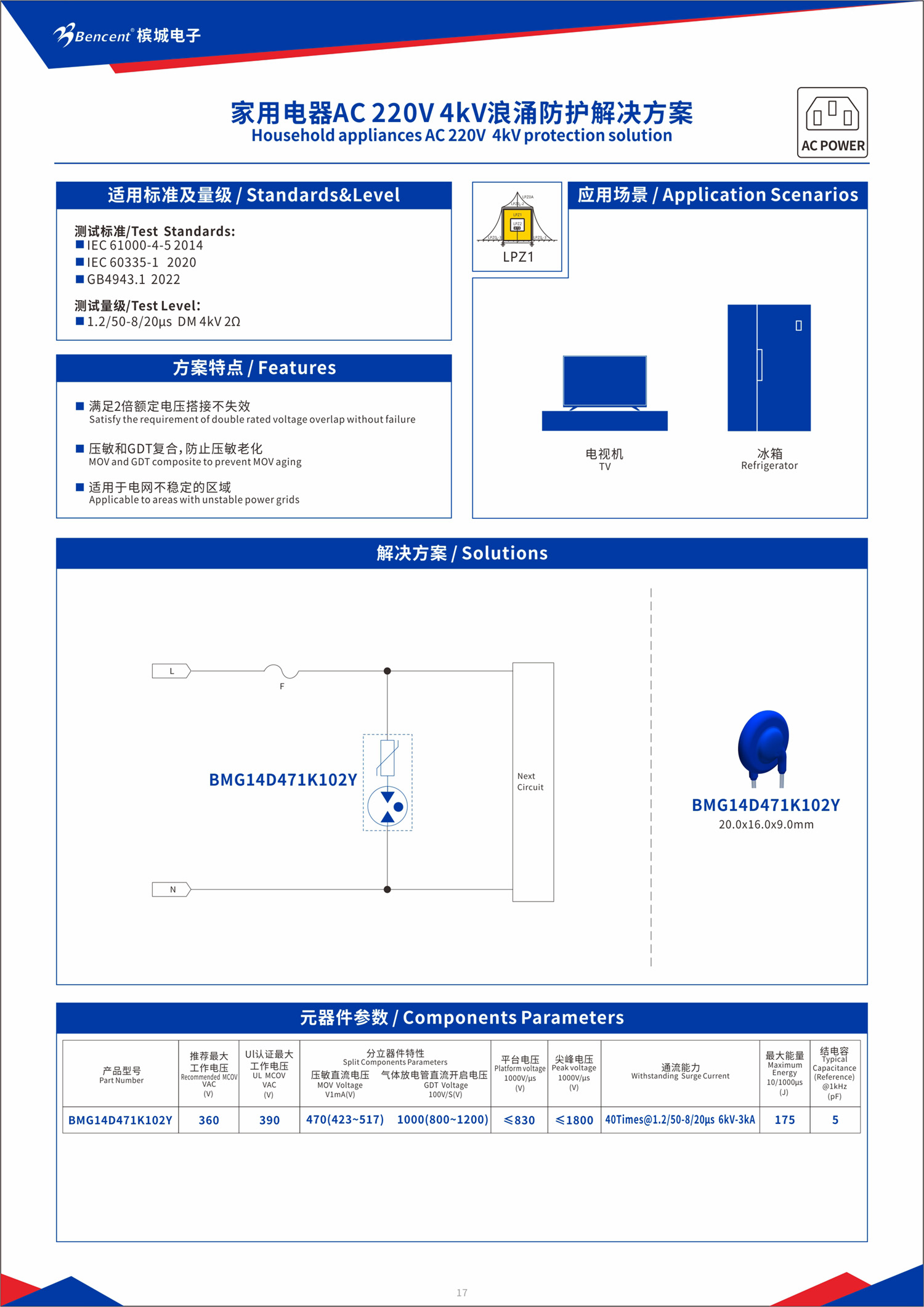 本次展會,針對電網(wǎng)波動較大的場景,我們帶來了MOV+GDT復(fù)合型器件: