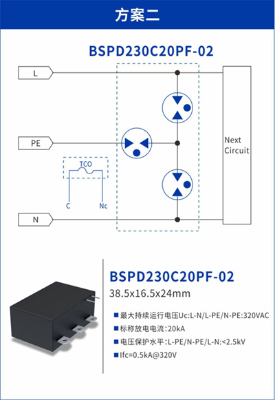 C:內(nèi)置溫度脫扣機(jī)制,有效切斷防雷電路與主回路之間的連接。